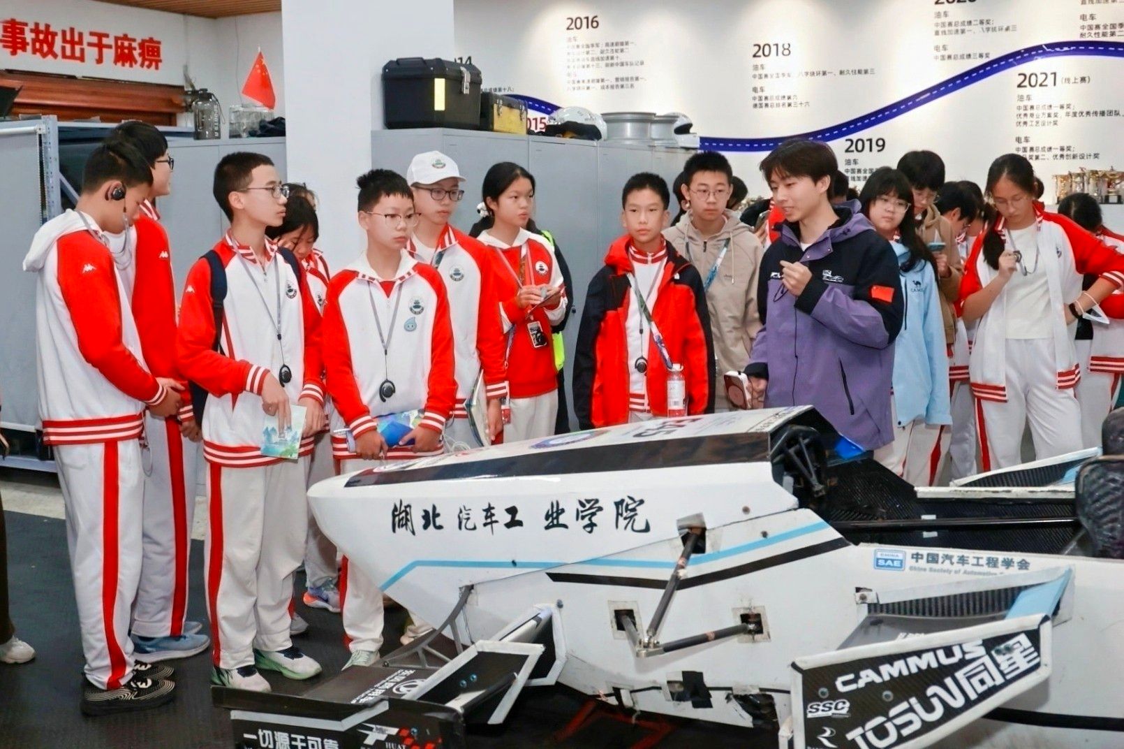 据悉,本次研学涵盖《汽车三线建设精神的文化传承》《汽车的昨天、今天和明天》两场讲座,以及汽车动力传动与电子控制湖北省重点实验室、汽车科普科创基地、大学生方程式赛车基地及微型车展等多个场地的参观体验。