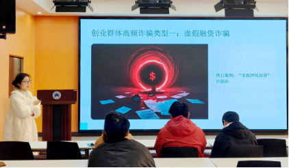 为提升创业学生金融素养与反诈防骗意识,筑牢校园安全防线,1月7日下午,学校在大学生创业孵化园举办“创业路上的安全基石——金融安全与反诈防骗”专题讲座。